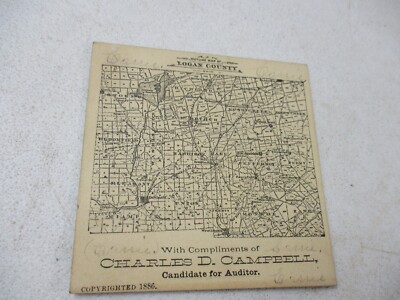 Antique 1886 Logan County Ohio Map Charles Campbell Auditor